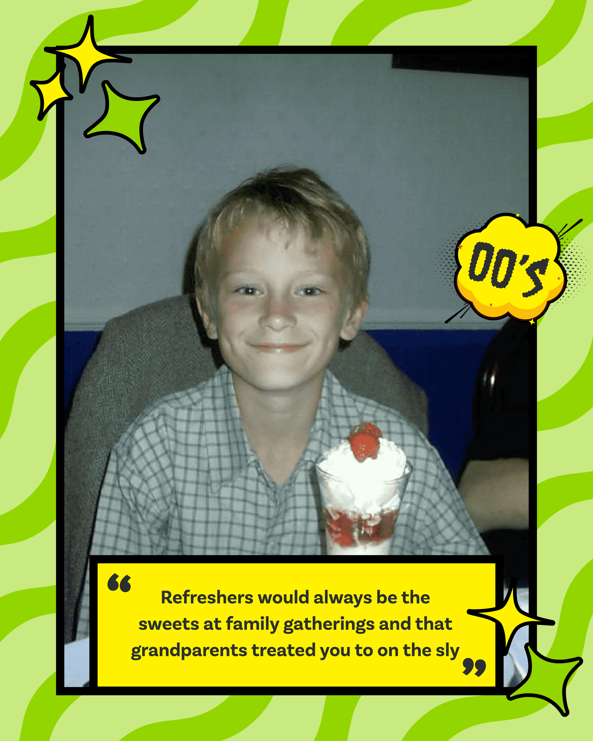 The goal was to hero the brand through a user-generated content–led campaign that encouraged fans to share their real, nostalgic memories. By reigniting emotional connections with the product, the campaign aimed to keep Refreshers front-of-mind, deepen brand loyalty, and drive engagement across social media.